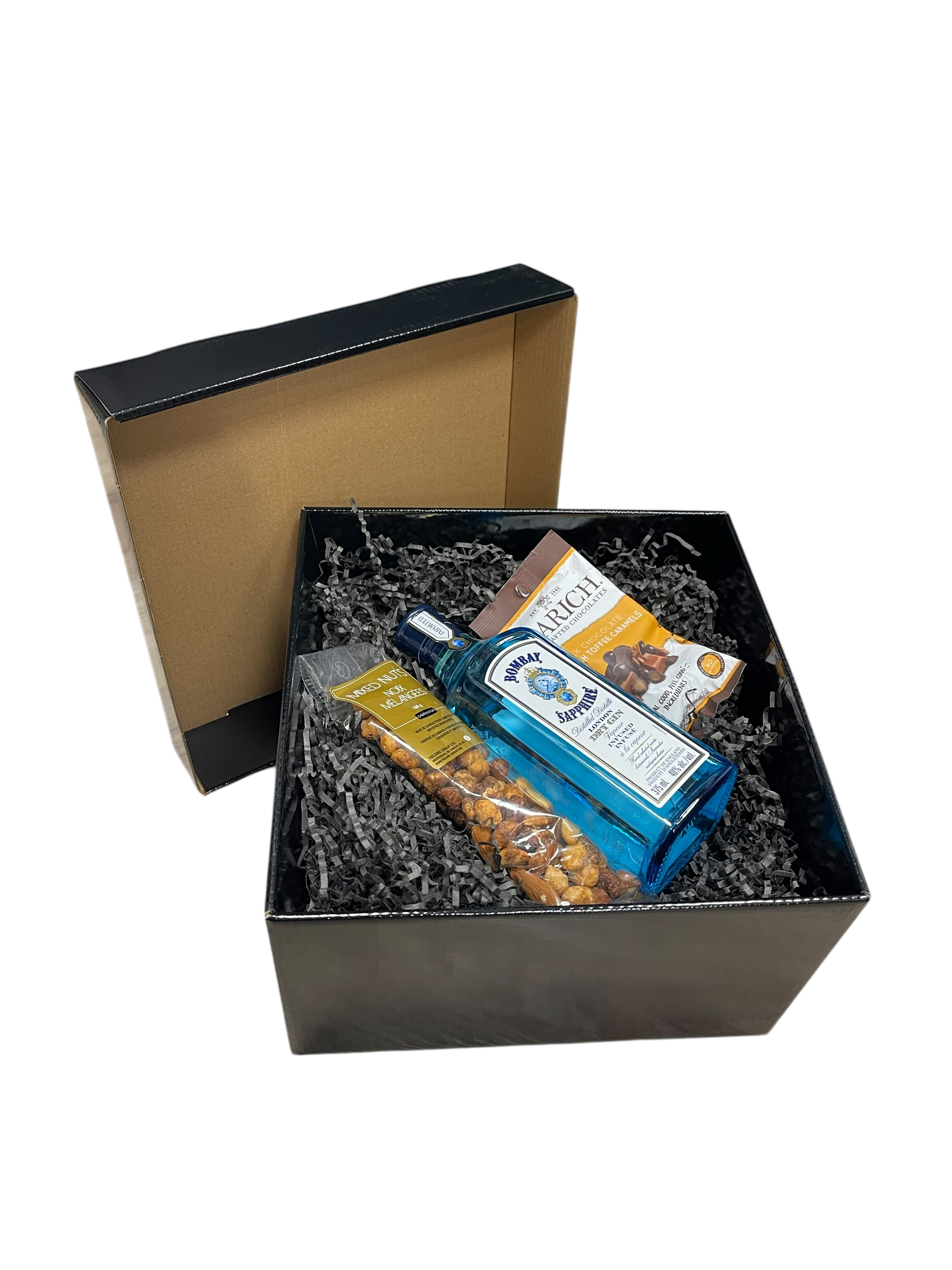 Give the gift of Little Luxuries. This elegant 375ml gift box pairs a premium half-sized bottle with carefully selected gourmet treats, all nestled in sleek black packaging.