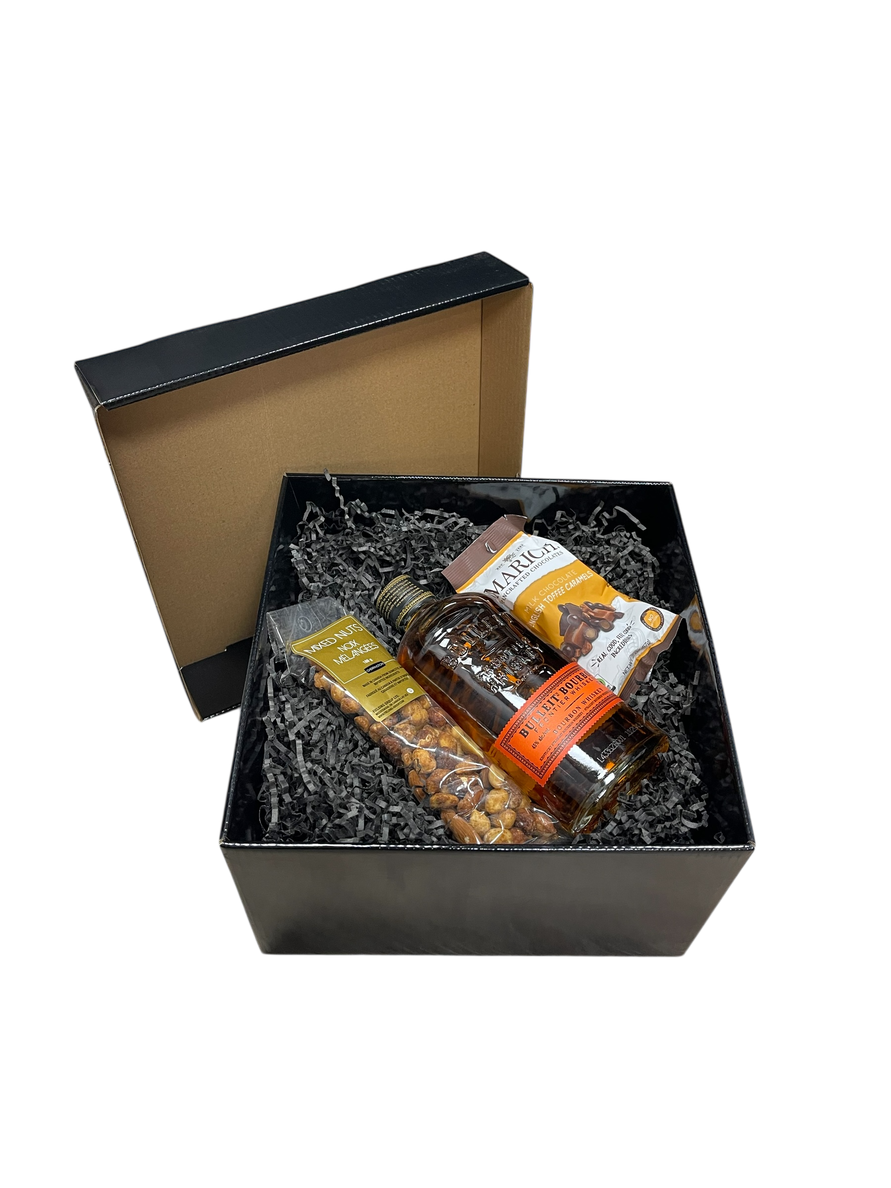 Give the gift of Little Luxuries. This elegant 375ml gift box pairs a premium half-sized bottle with carefully selected gourmet treats, all nestled in sleek black packaging.
