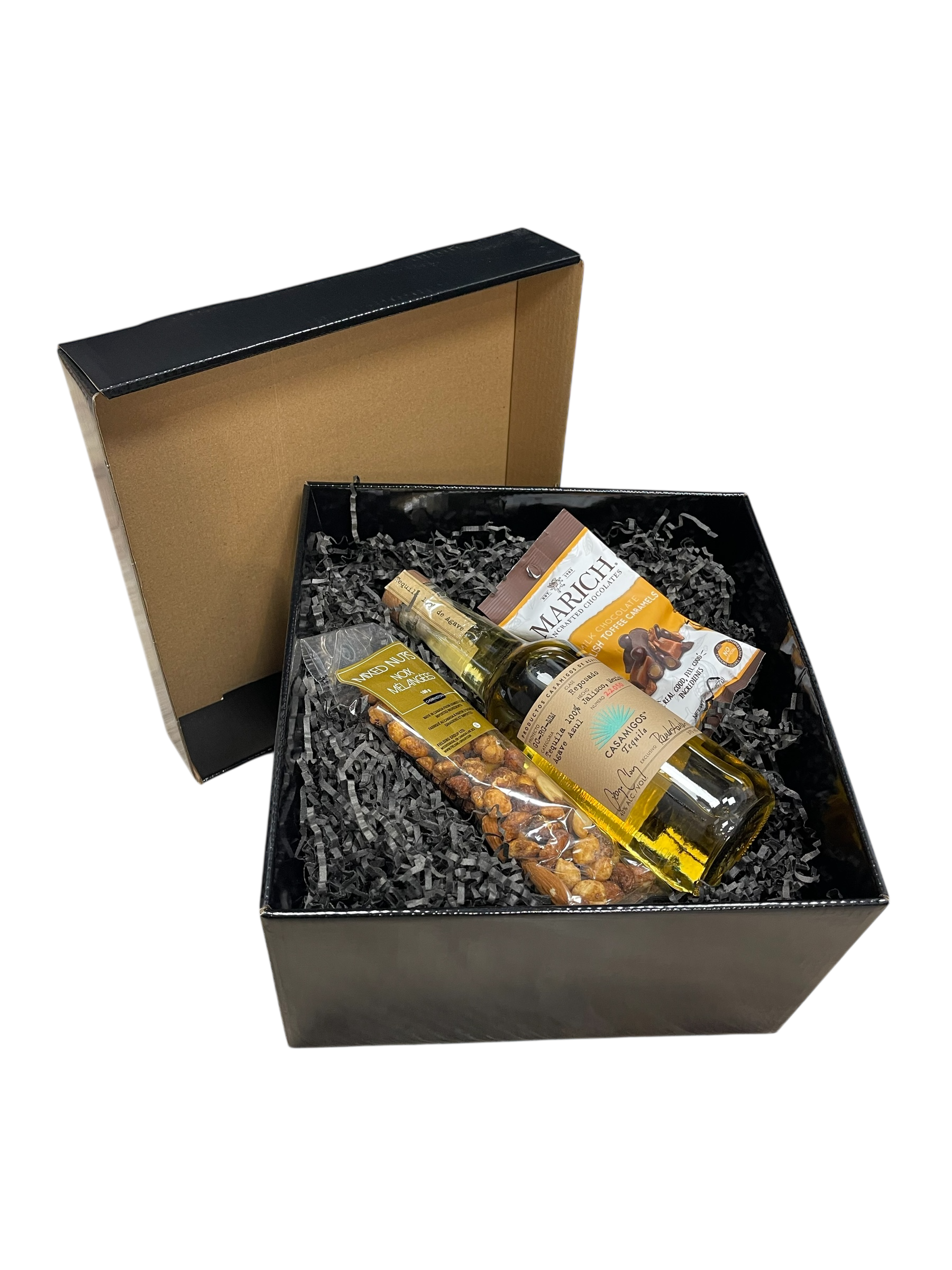 Give the gift of Little Luxuries. This elegant 375ml gift box pairs a premium half-sized bottle with carefully selected gourmet treats, all nestled in sleek black packaging.