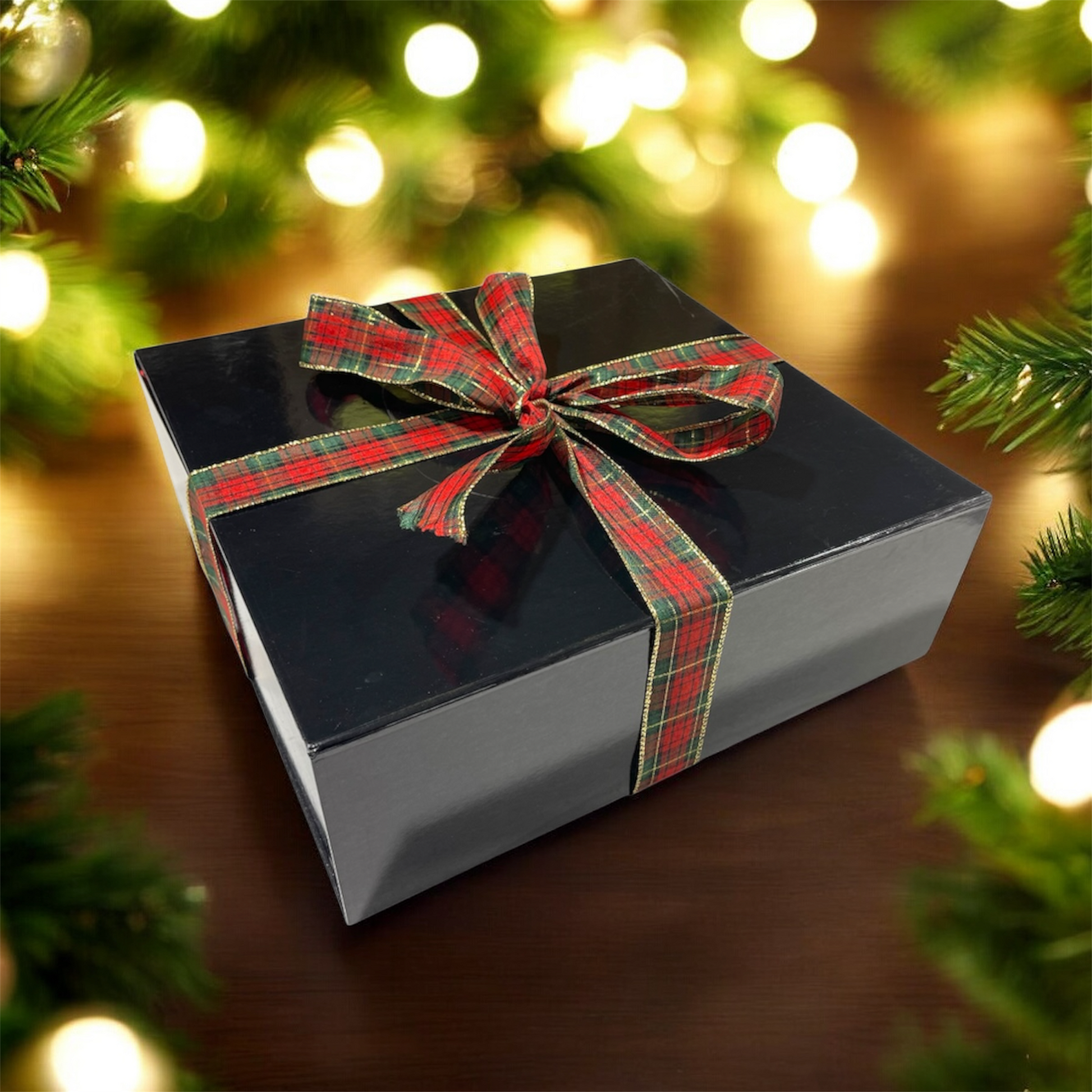 Beautifully presented in a sleek black gift box and wrapped with a classic red tartan ribbon